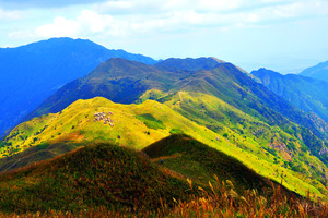 15:00 抵达水底山顶,穿越大草坡,沿路漫山的草甸,十分迷人,会让你有投入草原怀抱的冲动;
