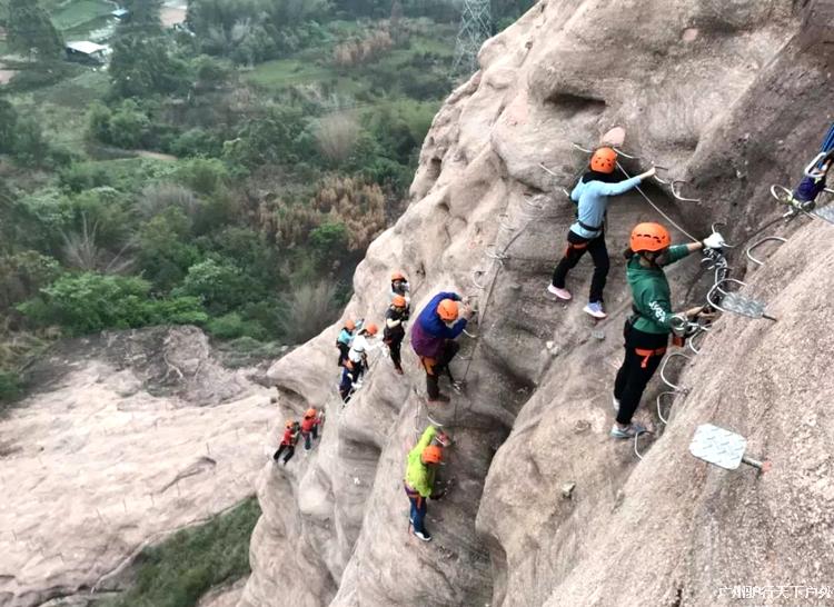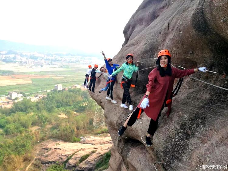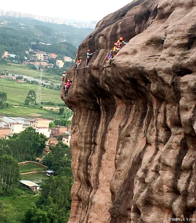10:45 开始我们的飞拉达之旅,身处上百米的悬崖上让体验者感到动魄惊魂,惊险刺激的线路挑战着体验者的胆量。