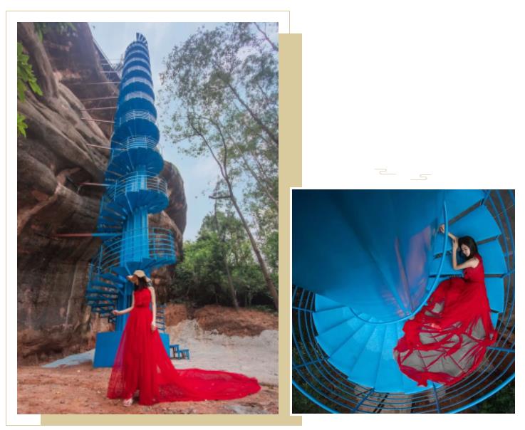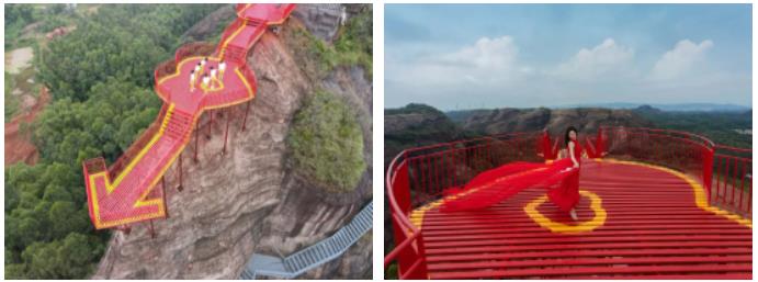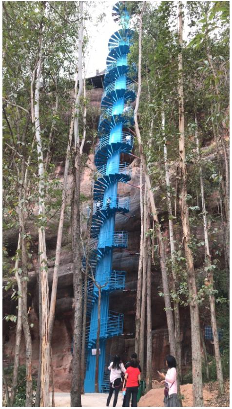 因为登上旋转梯后,还可以一边欣赏丹霞陡峭绝壁,一边享受风光无限的马头山美景
