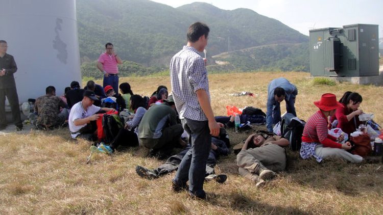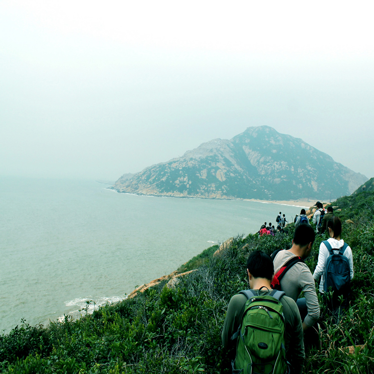 领队带大家到达空旷的岩石上午餐。海风还是会比较大的,要不然风车怎么转呢。街坊们要做好防风准备。不要着凉啦!坐在岩石上或者坐在草地上享受着午餐看着远处的西枕湾,人品赞的话能看到一两头中华白海豚(能不能看到海豚全靠当天的天气及运气~)