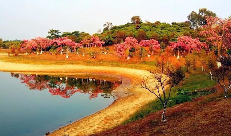 10:00 到达松山湖,开始环湖6公里徒步,依次经过紫荆花海,异木棉花海,落羽杉,欣赏一线湖景;(午餐为自带路餐干粮,景区内不同路段有小卖部和卫生间,可以补给);