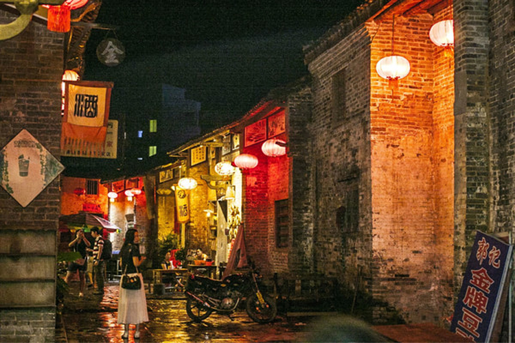游走的入夜的古巷中,巷弄里昏暗的灯笼,映衬着古街的青砖黛瓦,石板古木,仿佛让人在夜色中窥探着千年前明清旧梦。