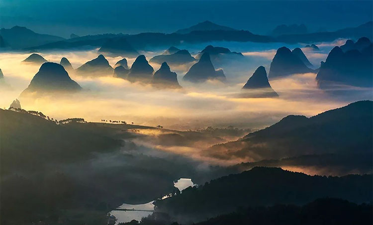 亮点3:东潭岭@俯瞰黄姚全景万峰竞秀,运气好的话还可以欣赏到日落和云海哦;