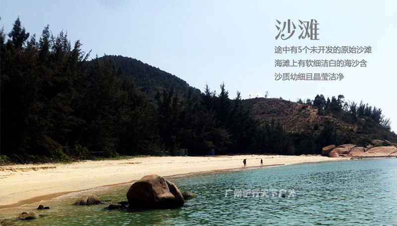 途中有5个未开发的原始沙滩,海滩上有软细洁白的海沙,沙质幼细且晶莹洁净