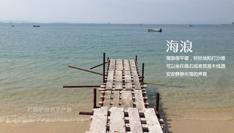 海浪很平缓,轻轻地拍打沙滩,可以坐在礁石或者简易木栈道上,安安静静地听听海的声音