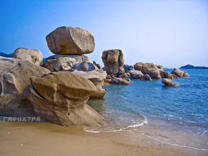 旁边有各种各样形态奇特的石群,像满地米、石一样,有鬼斧神工之妙,是巽寮石景观的典型代表