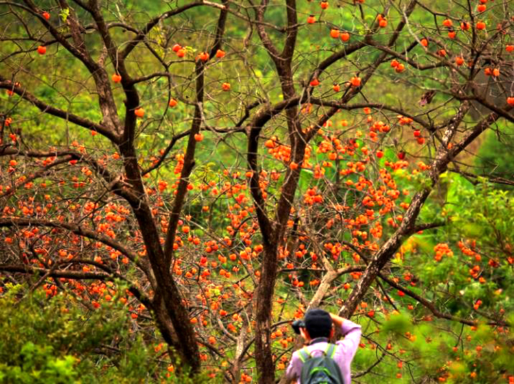 10:00 到吕田镇桂峰山脚下的村庄,徒步几百米进果园,到达柿子园,这里是红灯笼的世界,枝头挂满了红澄澄的柿子,大家赶紧拿出拍照神器随意的拍,摆出销魂的POS(发扬不拿群众一针一线的精神,进入果园不要随意采摘柿子哦,有当地居民在路边摆卖,大约3元一斤)