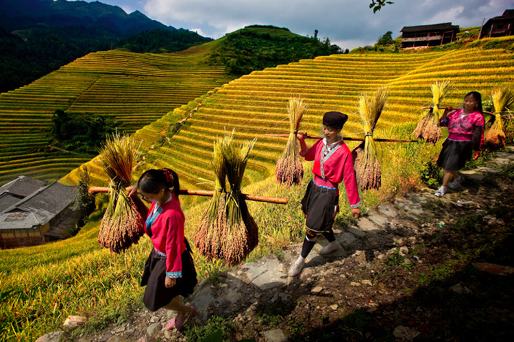 龙胜梯田开造始于元代,数百年来,历尽沧桑。居住龙胜梯田在这里的壮族、瑶族人民,祖祖辈辈,筑埂开田,向高山要粮。从水流湍急的溪谷到云雾缭绕的峰峦,从森林边缘到悬崖峭壁,凡是能开垦地方,都开凿了梯田。