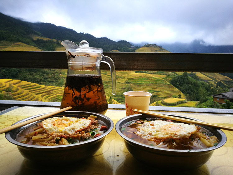 10:30 龙脊梯田景区大门,购票进去景区,由于不给外地大巴上山的,须转景区巴士进入景区寨。因此大家需要带上替换衣物和洗漱用品。到达客栈之后安排住宿,自由玩耍,梯田各种拍,也可出去寻找美食,组队腐败,老寨的安静任由你各种拍摄;