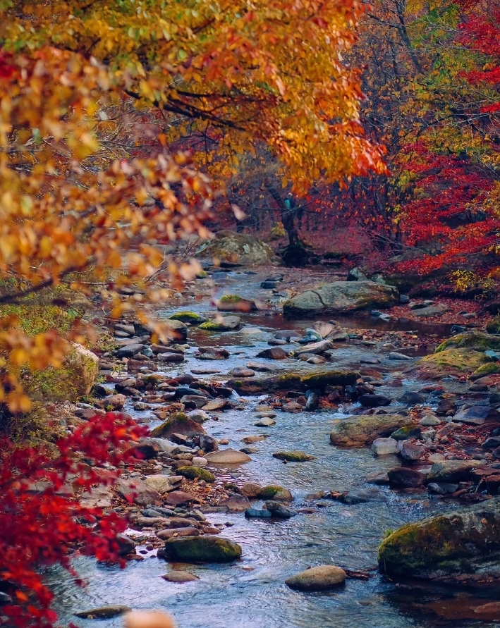 12:30 左右到达【十万株枫叶林】,跟随领队一起去赏枫,抬眼望去,层层叠叠的枫叶红得浓烈,红得似火,染红了山谷,染红了山涧,就像一条鲜红的地毯铺在蜿蜒曲折的山谷中,美轮美奂,美不胜收(当地有少量农庄,最好带上干粮)。