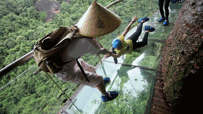 观云玻璃栈道:全长219米的玻璃栈道,悬挂于400米高空的王母峰绝壁之上,紧贴峭壁而建,凌空蜿蜒穿行~