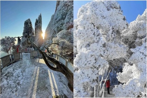阶梯、栈道上也铺满冰霜,仿佛通往天上人间。