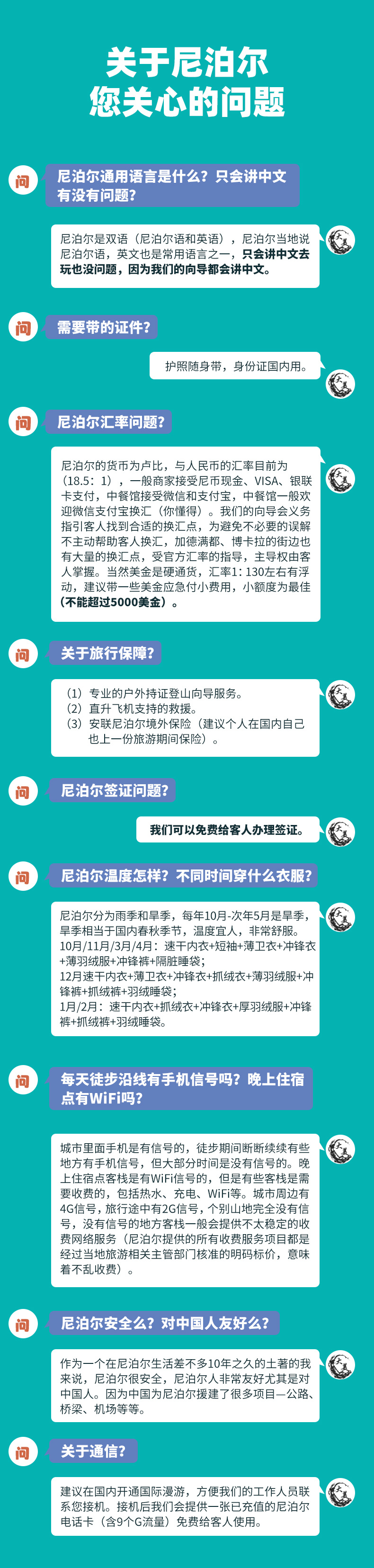 【出团通知】关于出团的相关事项,“大美尼泊尔·布恩山”客服会在出团前3-4天在群内通知,通知内容为:集合酒店名称、时间、地址、电话等相关信息,并提醒队员所需装备,请保持手机畅通,集合酒店房费已付,队员自己支付押金。