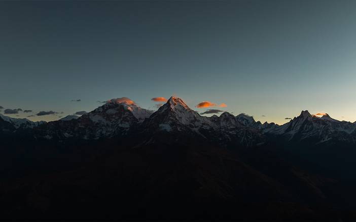 【行程概述】早晨4:00起床,徒步1小时左右前往Poon Hill观景台观看日出(这段路由于要走夜路最好携带头灯),这段路大约有3000多个台阶,所以登山杖与护膝是要随身带的,登上观景台运气好的话可观赏到日照金山。在观景台依次看到道拉吉里、安娜普尔娜Ⅰ、安娜普尔娜南、鱼尾峰等,感受喜马拉雅群山的震撼。返回客栈徒步约40分钟左右,下山途中会经过另一个观景平台,可以继续欣赏安娜普尔纳群山。早餐过后出发前往塔达巴尼Tadapani,这一段路是布恩山徒步最舒服的一段路,这里的山脊上有观景台,有林间小路、溪流、瀑布等等。徒步时间约为7小时,距离约为15公里。塔达巴尼Tadapani也是一处很好的景点,在这里可近距离欣赏鱼尾峰和安娜普尔纳南峰,是拍日落与日照金山绝佳的好地方。