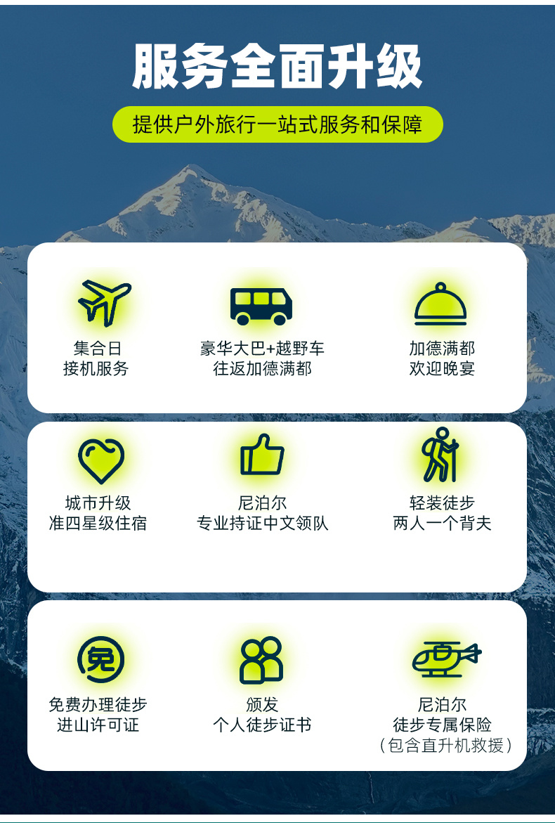 7、我们赠送了尼泊尔徒步相关保险,但只是最低保障。建议根据个人实际情况,购买适合自己的保险。