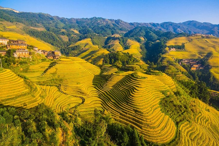 根据景区的提示,龙脊最好的游览时间每年除了四五月便是中秋以后的半个月,这个丰收的季节,梯田稻谷成熟,龙脊是一片金黄的世界,很多优秀的龙脊摄影作品就是这个时候产生的。