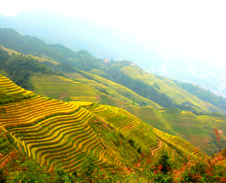 对于龙脊梯田,黄姚古镇的青石板路只是开胃菜,龙脊梯田上山的路都是石板砌成的。凹凸不平,沿着石板路徒步探险,一步一景,早起到西山韶乐看日出,宁静美好,眼球沐浴在薄雾中,静静等待着,橘红色的天体临幸。”天上人间之龙脊”大致也就源于此吧。