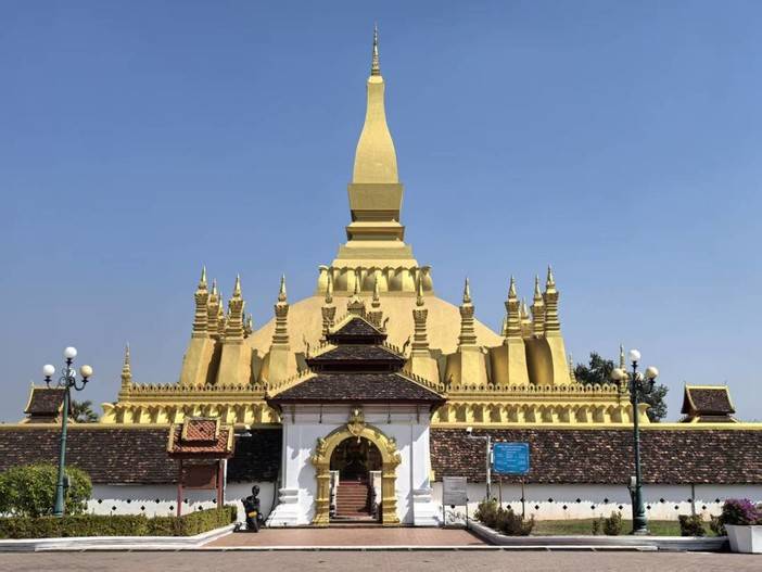 中餐后返回酒店收拾行礼,从琅勃拉邦站乘坐动车前往老挝首都【万象】。车程2小时,抵达万象后前往游览【塔銮寺】,塔銮寺历史悠久,据说最早能追溯到公元前3世纪,1566年由澜沧国王塞塔提拉扩建,后来又多次修复,才有了现在的模样。它不仅是宗教建筑,更是老挝历史的见证者,在老挝人心中地位极高,国徽上都有它的身影。