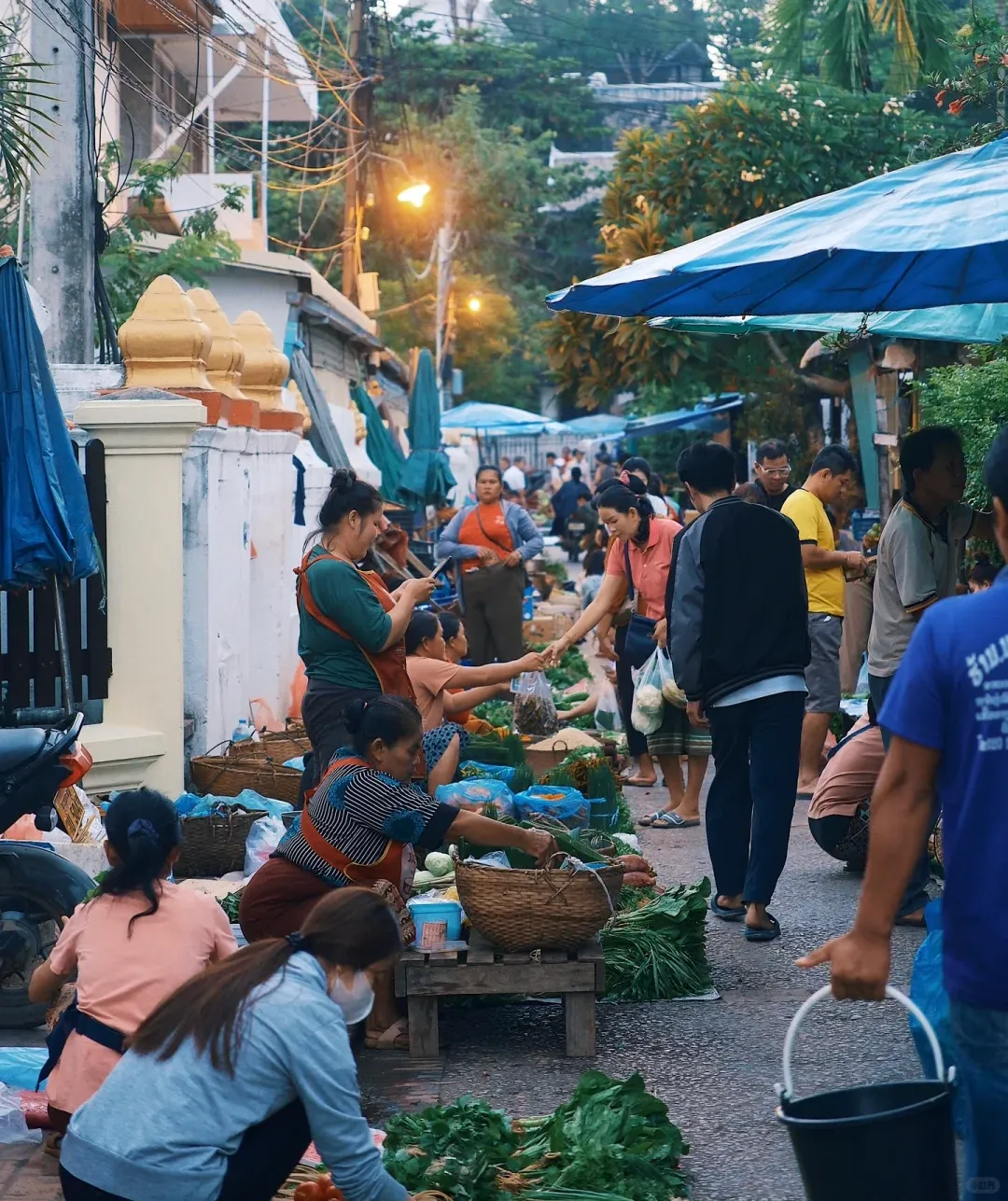 琅勃拉邦的清晨从布施开始,这是老挝佛教僧侣上千年来保持的传统习俗,也是当下全球游客来老挝体验且必不可少的仪式感环节。参加布施的伙伴们今天需早起,前往【僧侣布施】(一般是 5:30 开始,约 30 分钟)。于晨雾中观礼琅勃拉邦著名的仪式(小乘佛教国家特有文化习俗),当地居民对走过的僧侣进行布施,体验老挝人民对于宗教的虔诚与执着。