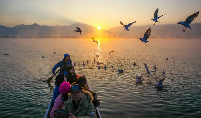 早晨起来看泸沽湖醉美日出,朝阳、湖水、晨雾构成一幅醉人的画卷;欣赏完日出后自由在湖边拍照,早晨的泸沽湖是美丽的,你怎么拍也拍不够,当然你也可以放开一切的睡到自然醒。随后前往码头乘坐泸沽湖畔摩梭人独有猪槽船游湖体验,蓝天白云,碧水轻舟,置身于如梦幻般仙境之中;随后沿泸沽湖畔【环湖一圈】,途经【情人滩】【里格半岛】,沿环湖路离开景区途经宁蒗县午餐后返回丽江,结束愉快大香格里拉环线之旅。