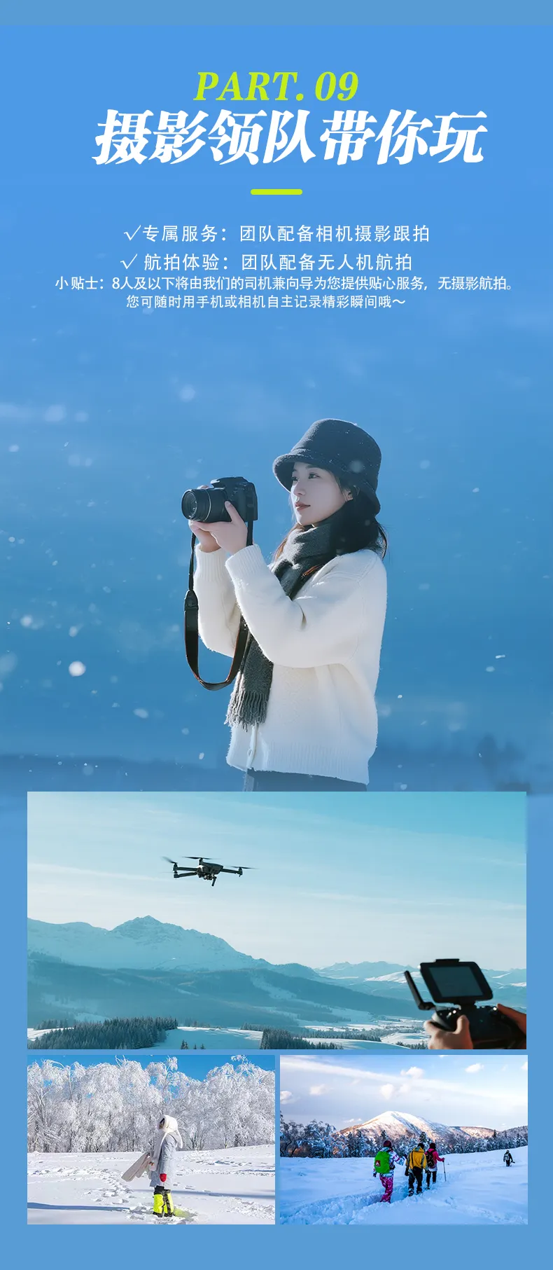 13、为了记录您在旅途中的美好瞬间,服务人员可能会为您以及同行人员拍摄一些照片,这些照片可能会被选中用于本产品活动分享、产品宣传、新媒体运营等,若您不同意授权我司使用的,请您在报名时备注。