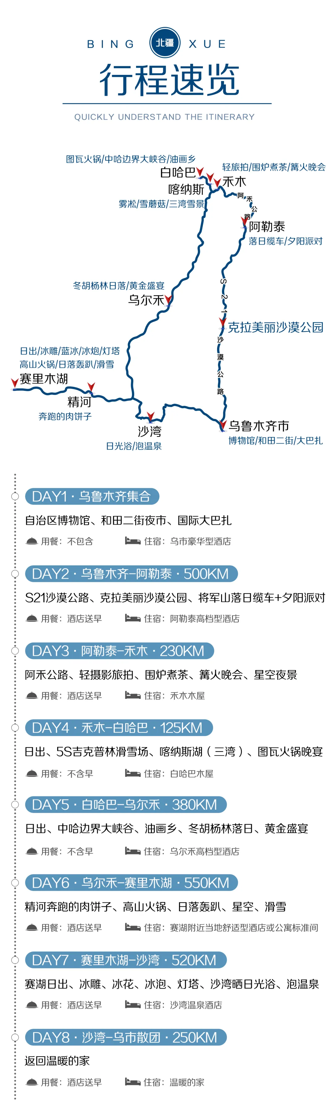 6.禾木旅拍及围炉煮茶为赠送项目,不参加不退费,敬请谅解。