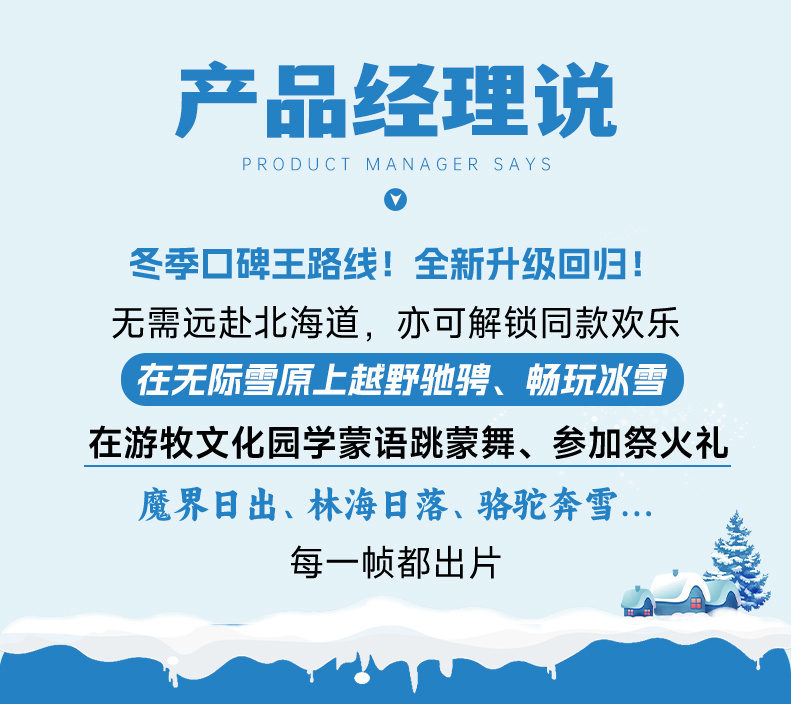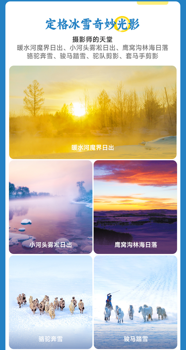 3、门票:乌兰布统、塞罕坝冬季不收费,如需收费请自理