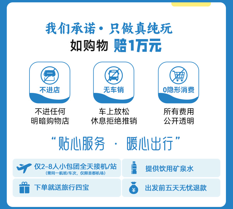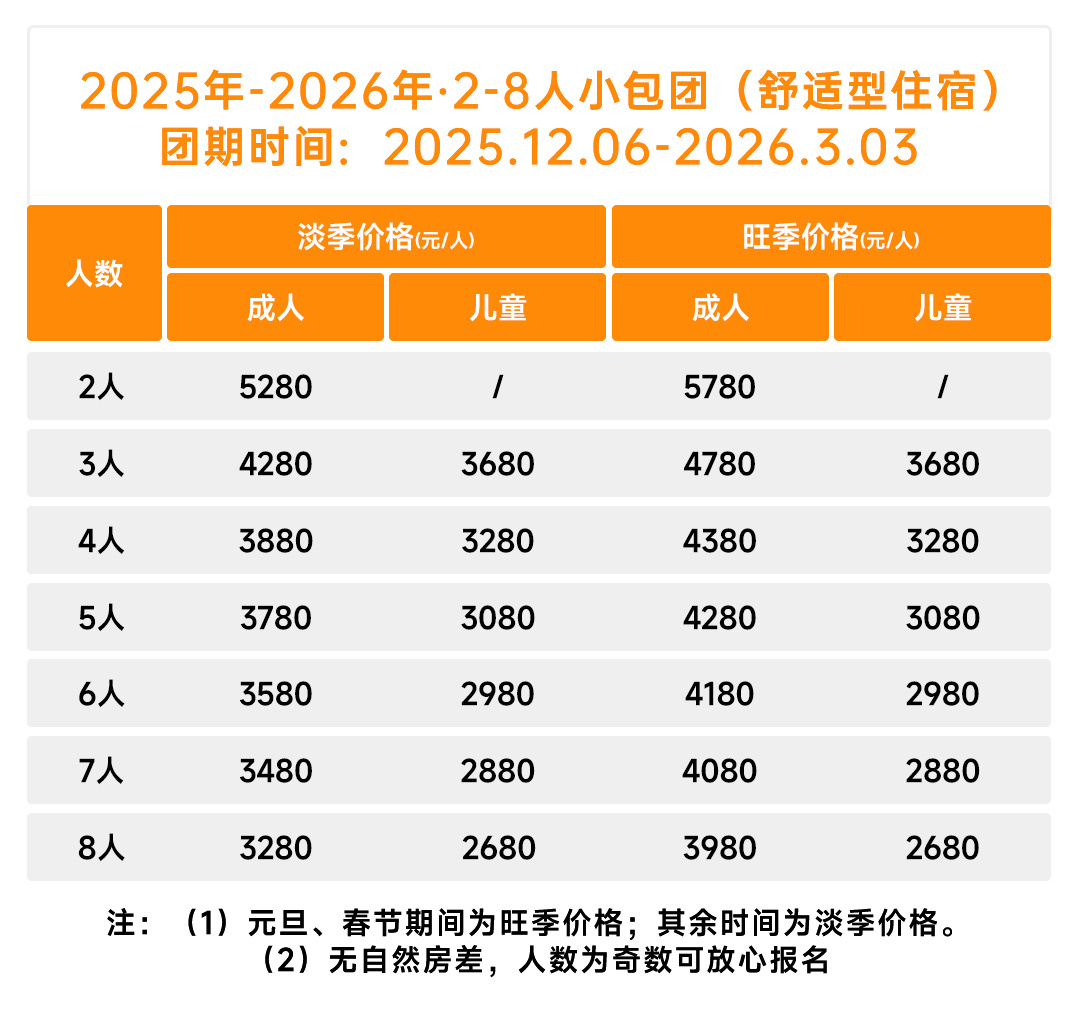注意:8人拼车小团以上所有团期住宿为舒适型酒店标间