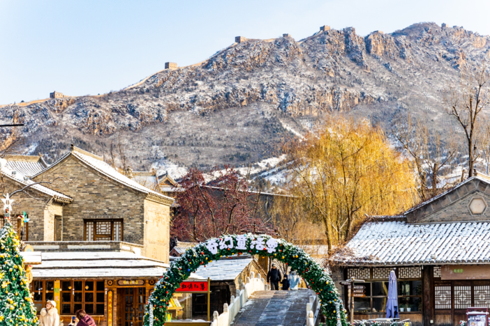 夜幕降临时,我们可以到牌楼附近的大戏台看看镇子上免费的表演,还可以去看精彩绝伦的水舞秀、无人机表演。也可以尝尝戏台前的小吃摊,这时你就会有种穿越的感觉,坐着宽板凳,听着戏、相声,我们仿佛回到了古代。晚上观繁星下的司马台长城,住特色客栈泡温泉(赠送双人温泉票),享受童话小镇的冬季专属浪漫!