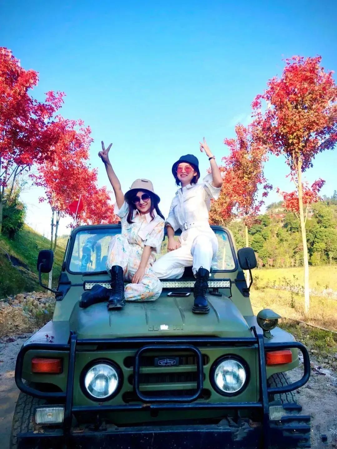 2.岭南红叶世界中的天空之境和天梯需要乘坐电瓶车上到观日坪,费用20元/人,自由选择,非必须消费;