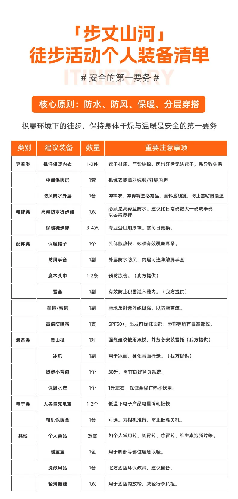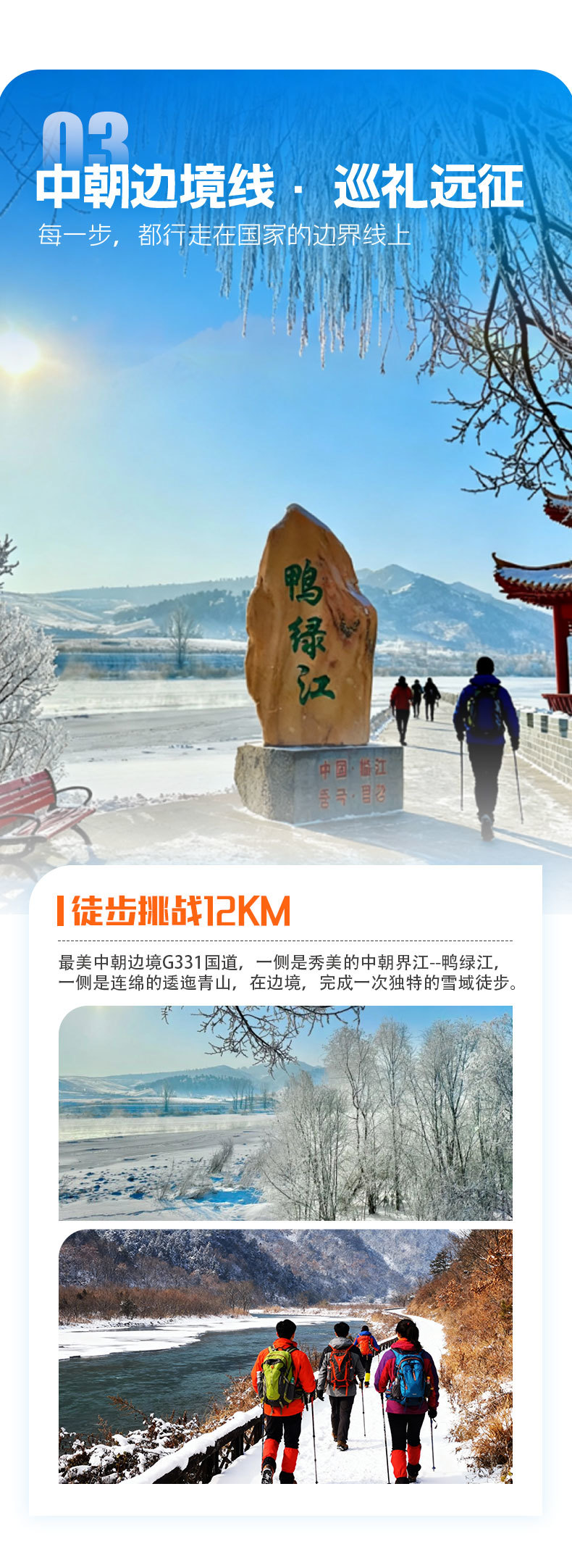 服从领队安排,勿擅自离队行动;徒步时注意防滑,遵守边境区域规定(如禁止拍摄、越界等)。