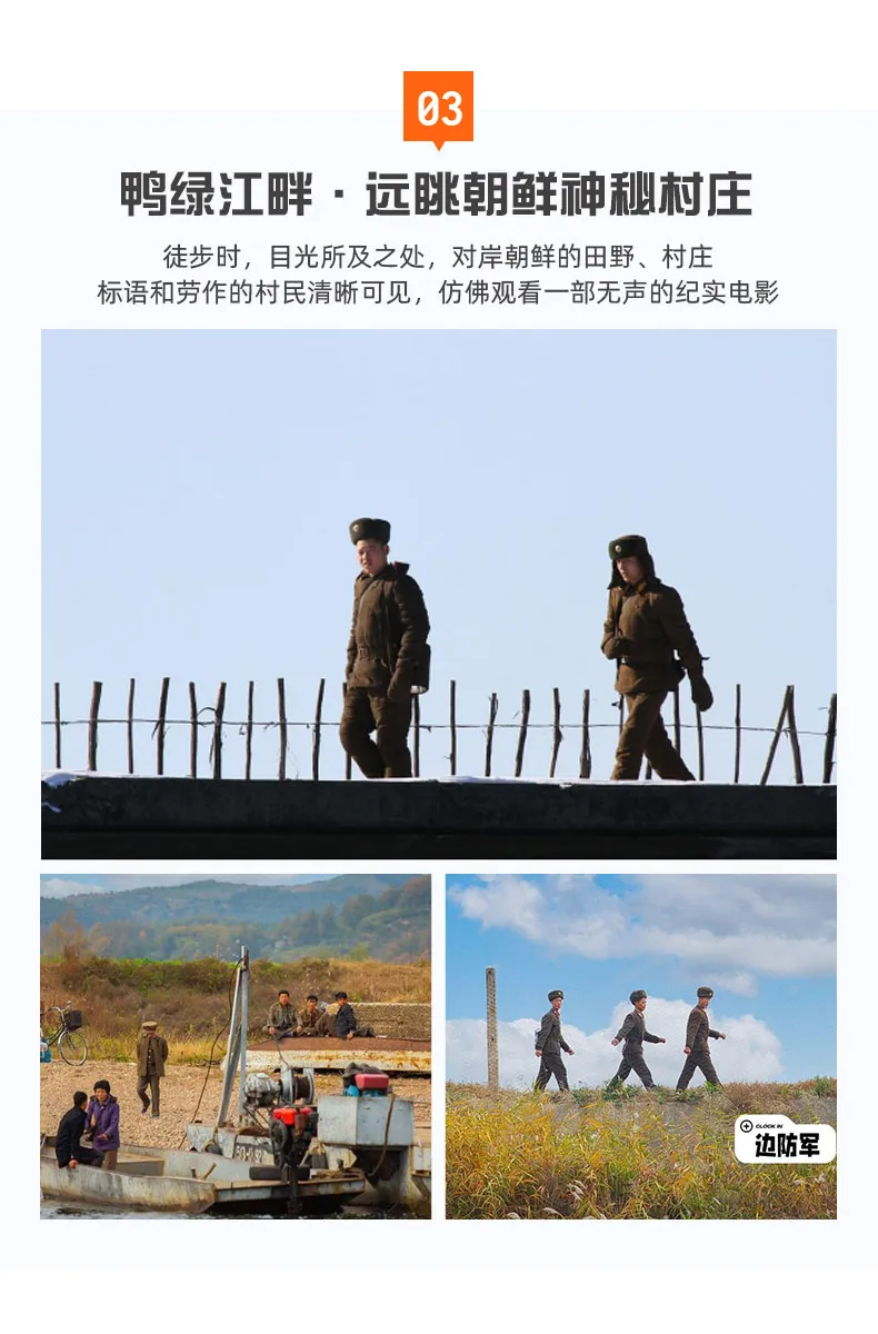 一路沿鸭绿江畔前行,一侧是祖国山川,一侧是朝鲜的田野与村庄,能直观地感受到"一步跨两国"的独特体验。领队会指引大家观察对岸风光,并讲述发生在这片土地上的红色历史与边境故事。