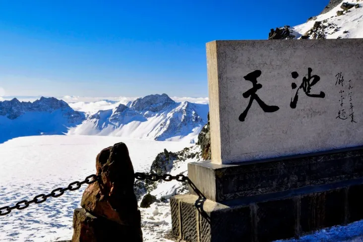 巅峰震撼:当宝石蓝色的天池在眼前豁然展开,四周十六峰如卫士般环绕,所有艰辛瞬间化为“值得”的感叹。冬季的天池湖面完全冰封,宛如一块镶嵌在群峰之中的巨大蓝宝石。