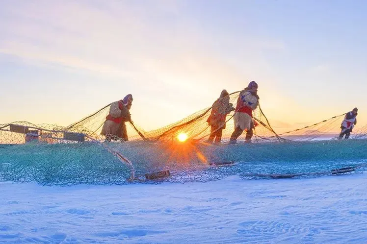 2、镜泊湖冬捕体验+雪地飞龙(每年12月下旬至2月下旬冰面厚度达到安全标准后赠送,其他时间不赠送)