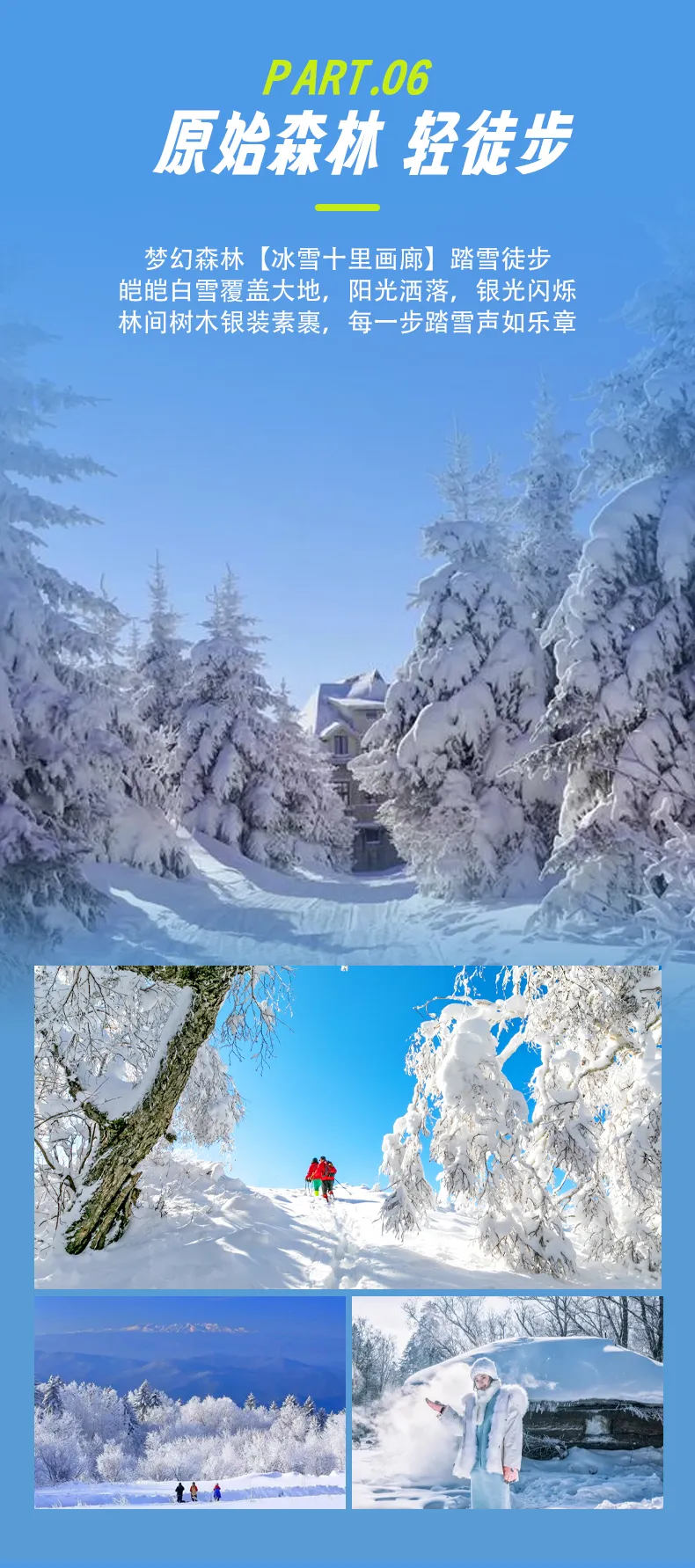 【门票】全程门票费:长白山北景区门票+景交车票、吉林滑雪场滑雪票(含雪杖/雪板/雪鞋/魔毯/雪圈)、冰雪画廊穿越、雪乡门票+景交车票