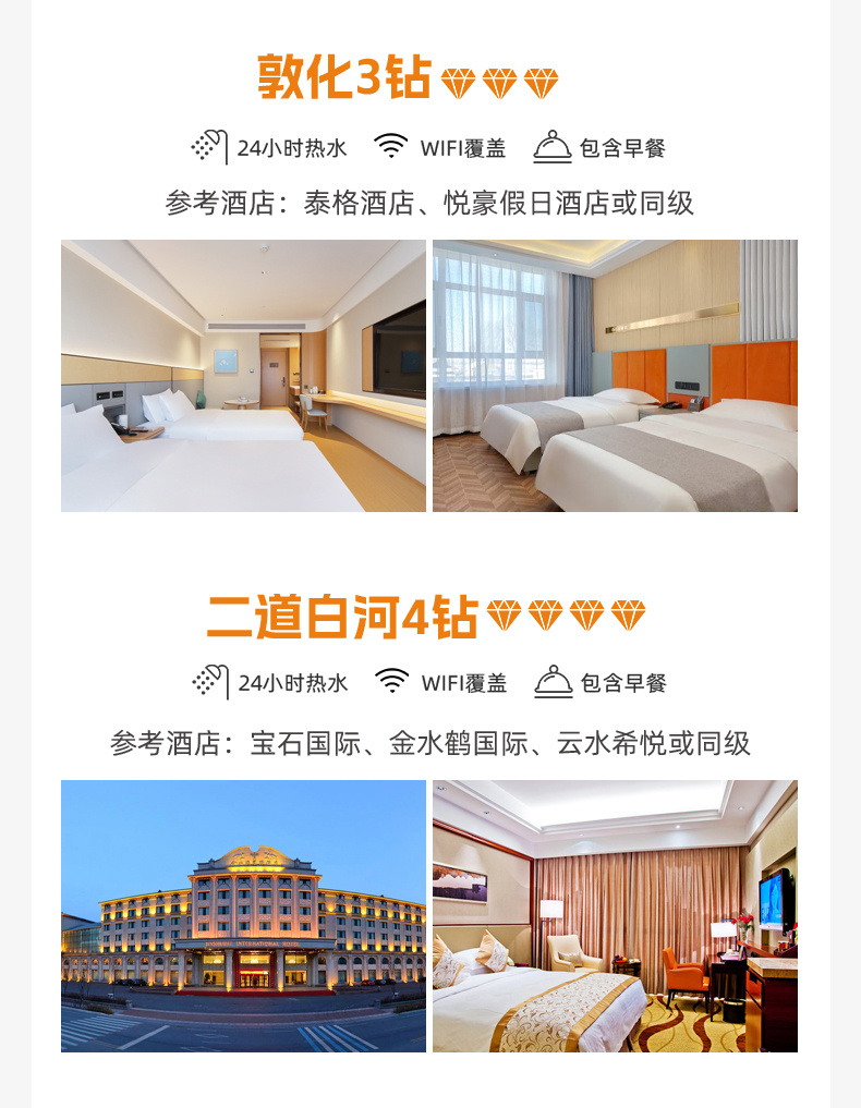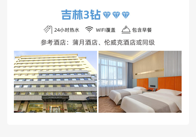 备注:酒店钻级参考标准:3钻为当地舒适型酒店、4钻为当地高档型酒店,5钻为当地豪华型酒店,东北经济发展较南方相对落后,与大城市同级别酒店略差,敬请见谅