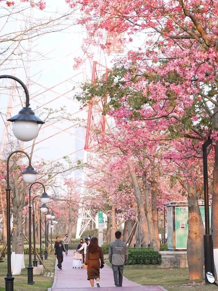 14:45 左右到达【珠海横琴花海长廊】,沿着长廊拍摄花海,对面就是澳门,这里的花海全程14公里,途中有多个驿站可停留休息。11-12月是花开旺盛期,万紫千红的异木棉都在努力绽放着,是冬季 zui 佳赏花好去处(游玩大约2小时,之后集合回家咯)