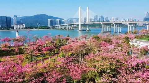 与澳门一海之隔拥有美丽的花海景观,根据不同花期,种植有樱木棉、凤凰木和木棉等。