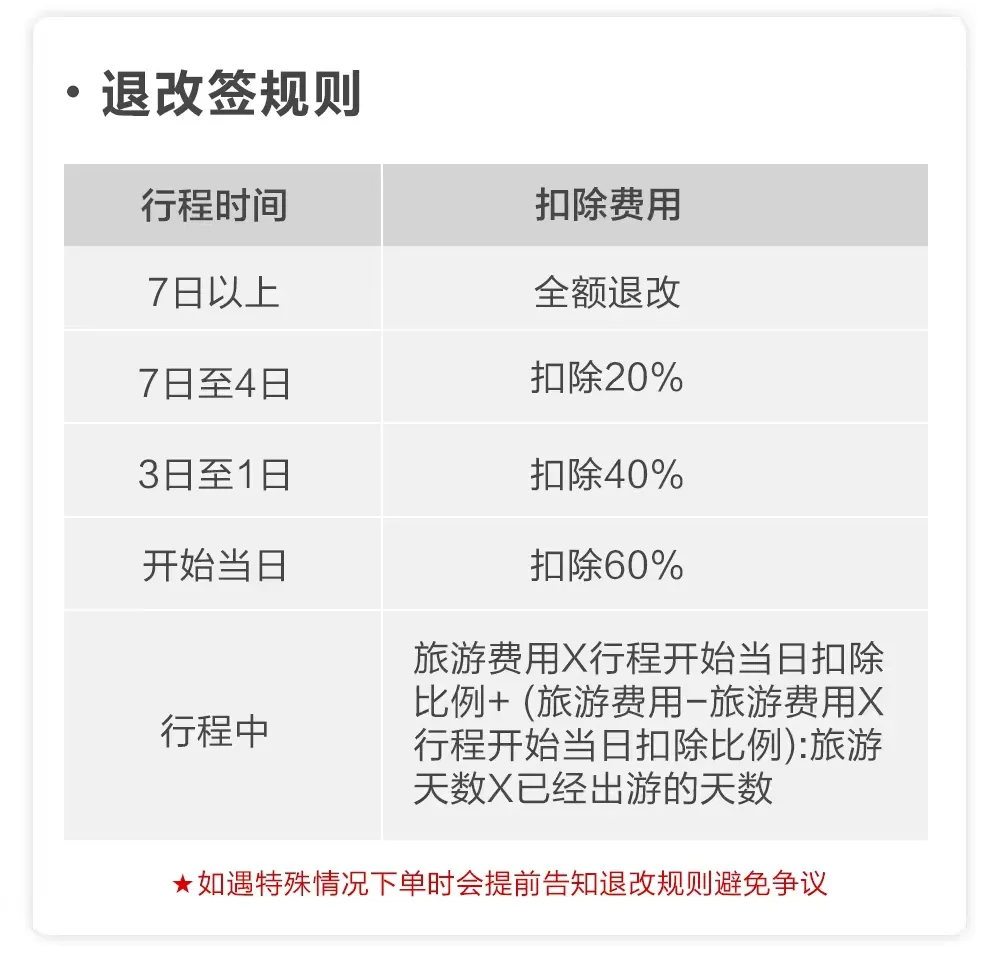 二、行程与退改规则