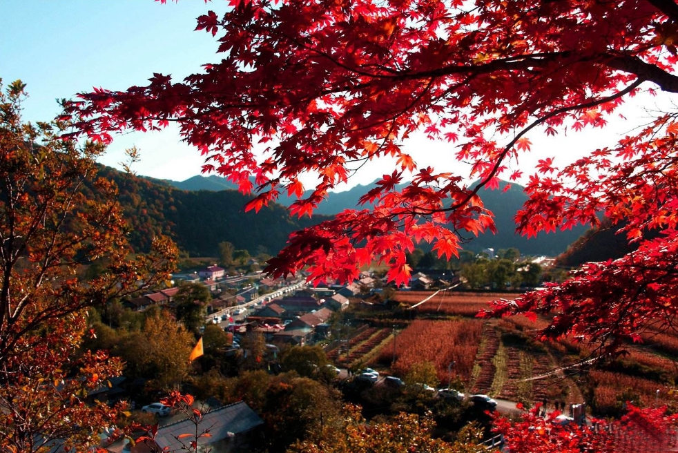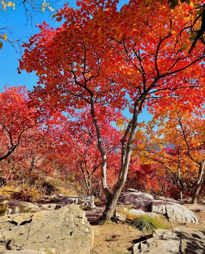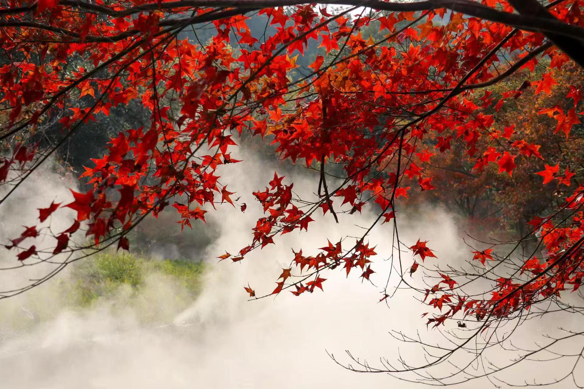 枫叶林纷纷开始褪去绿衣披上红色秋衣