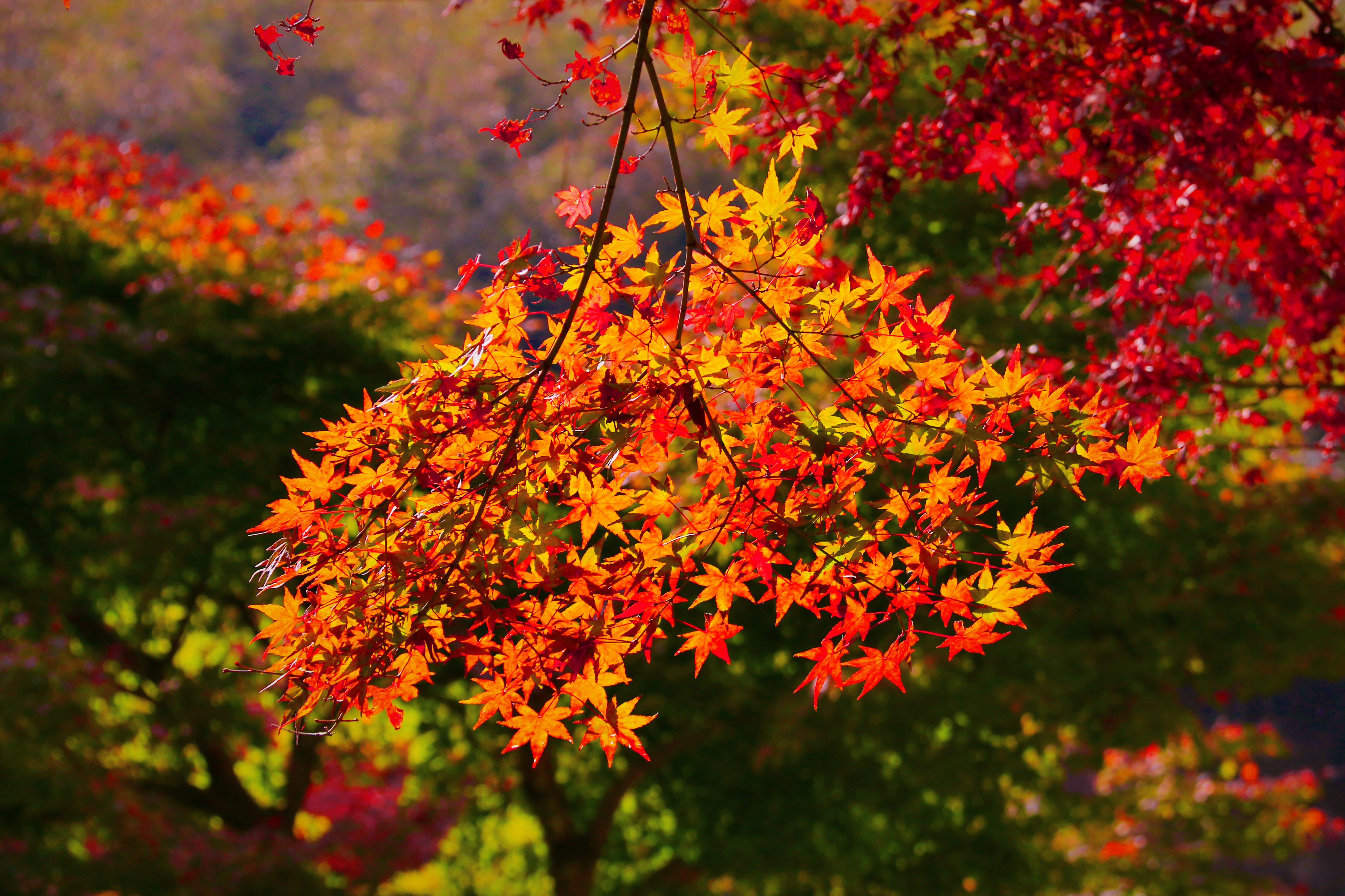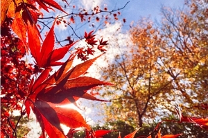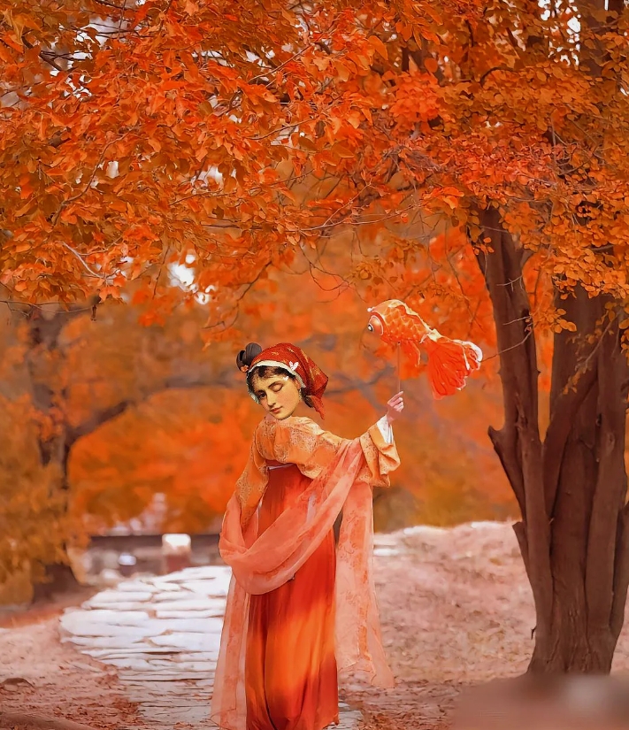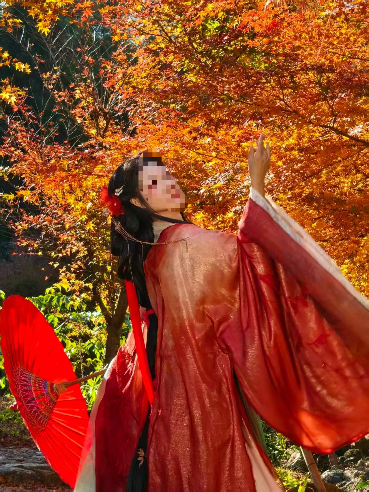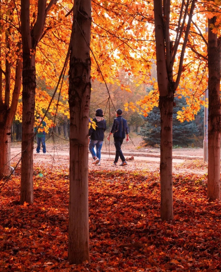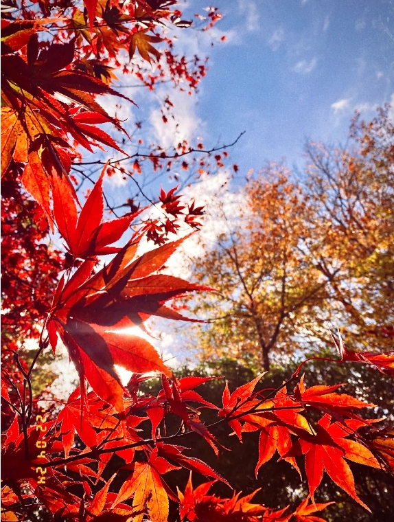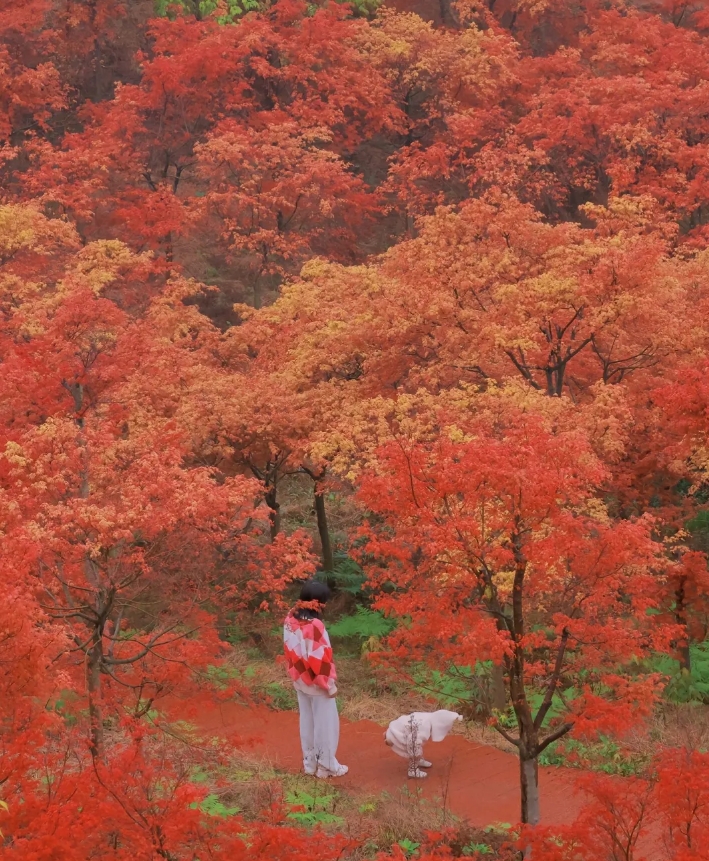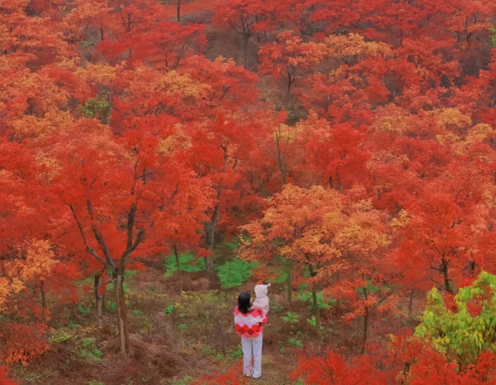 漫山的枫叶里,深红、粉红、橙红、橘红,层次分明