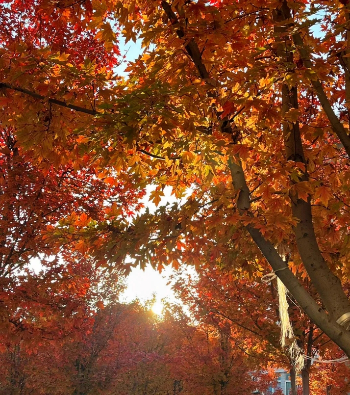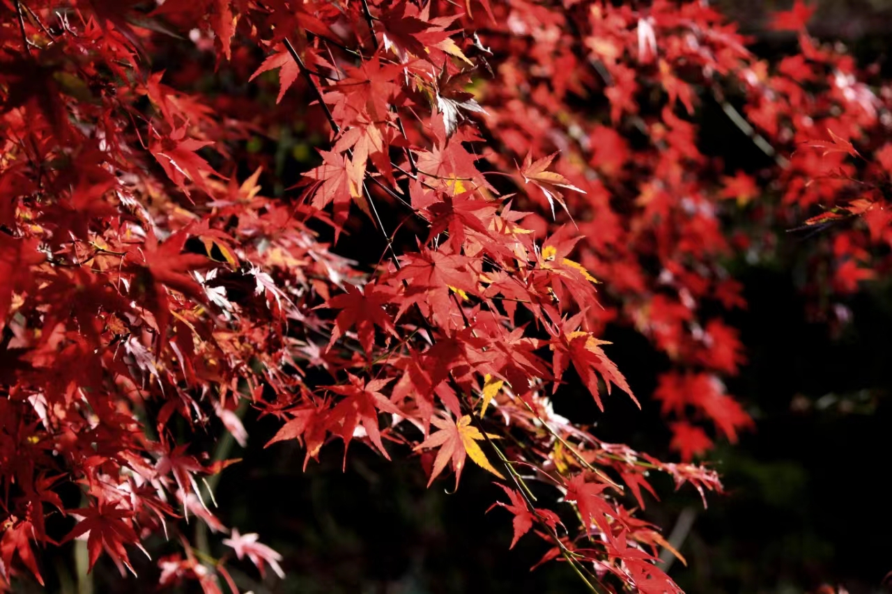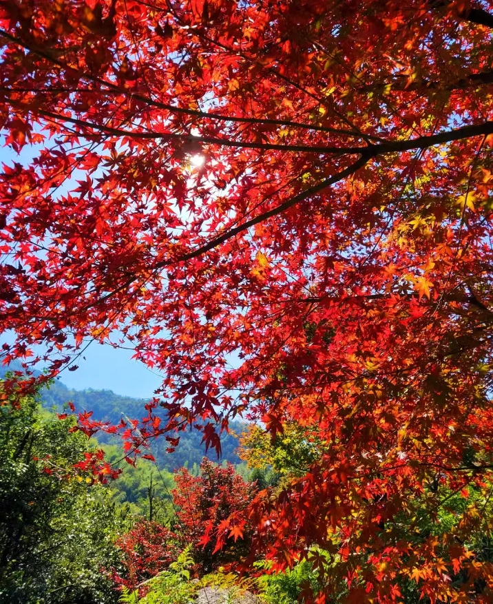 抬眼望去,层层叠叠的枫叶红得浓烈