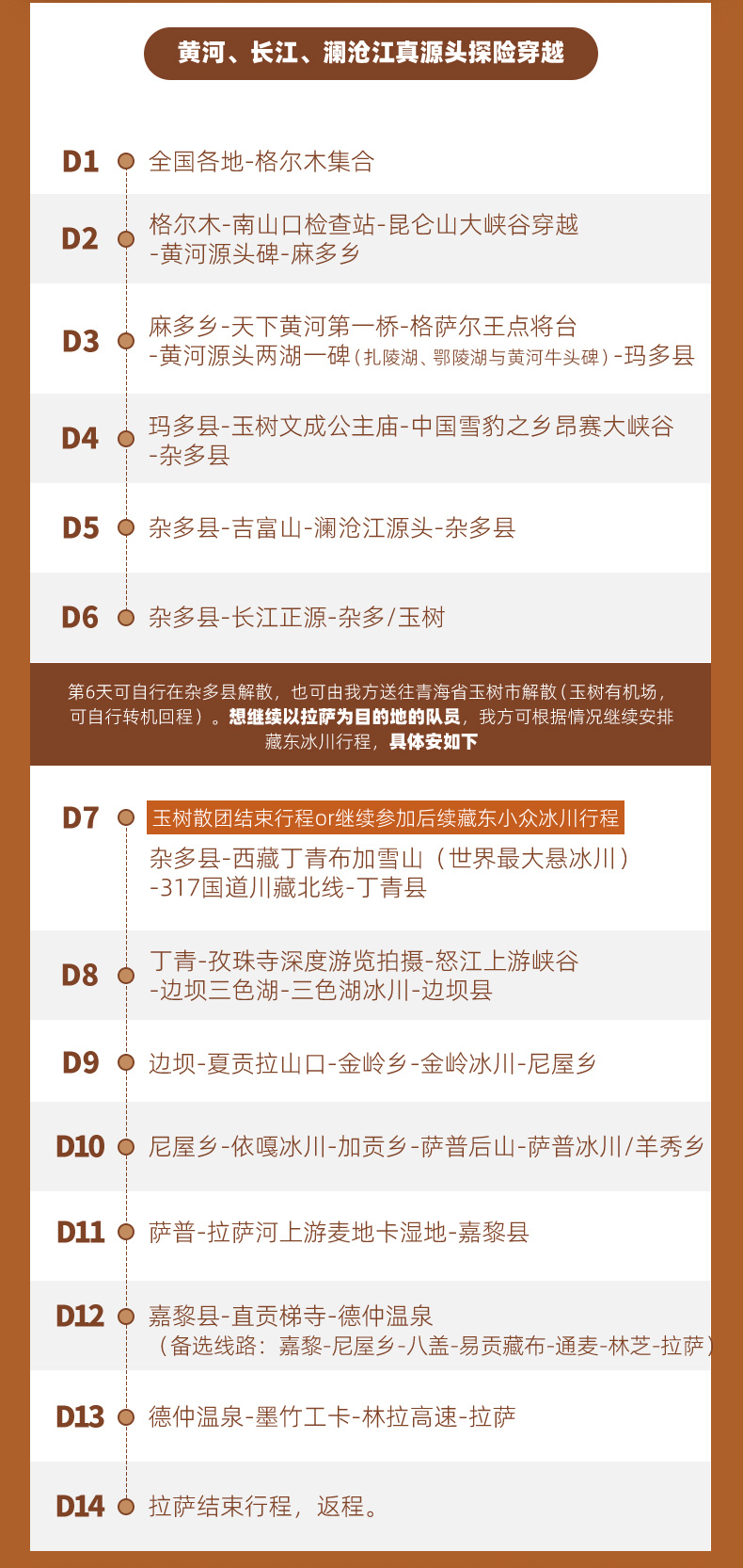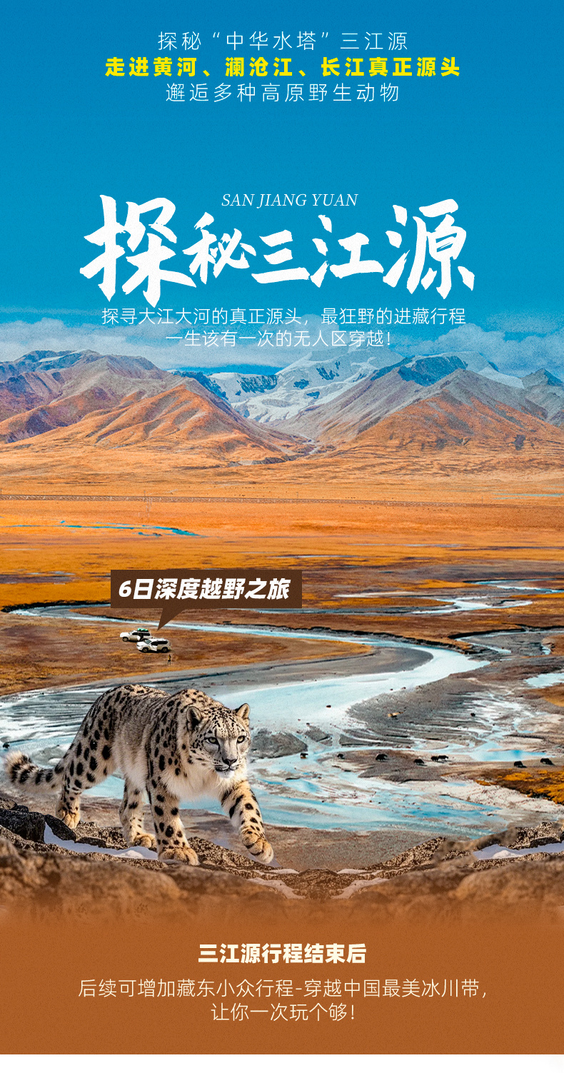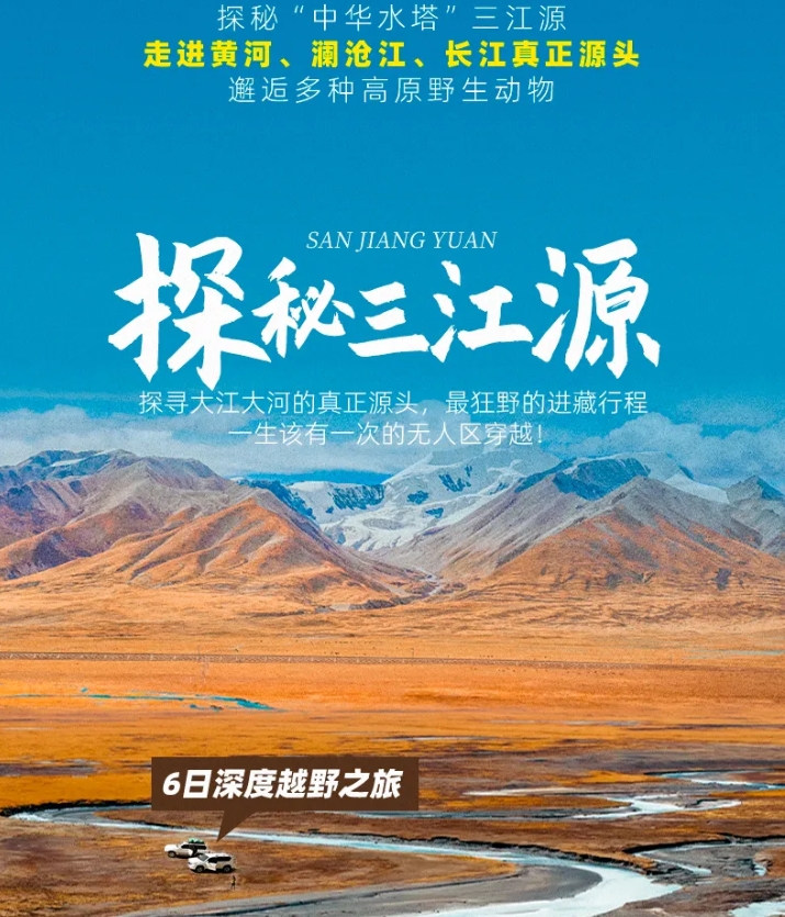(2)只参加三江源行程的队员此日可自行在杂多解散,从长江源返回到杂多大概下午6点钟左右,我方可安排车辆将返程队员送至玉树机场/玉树酒店。
