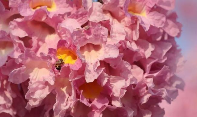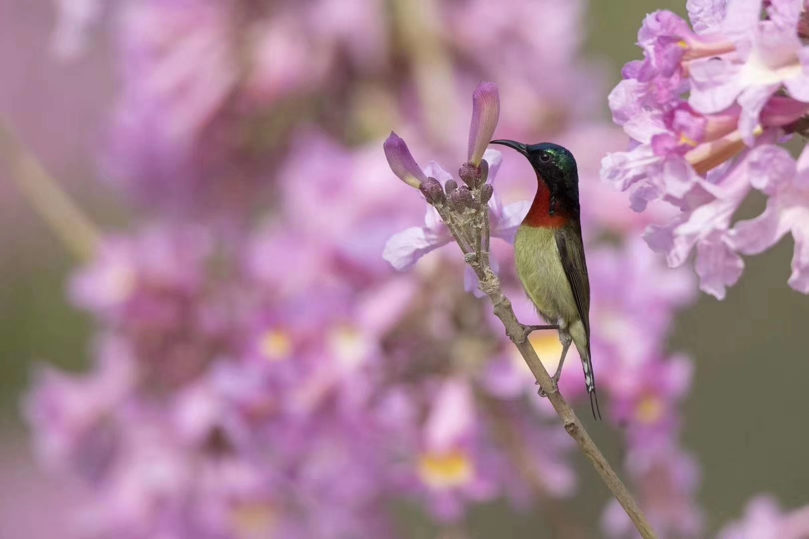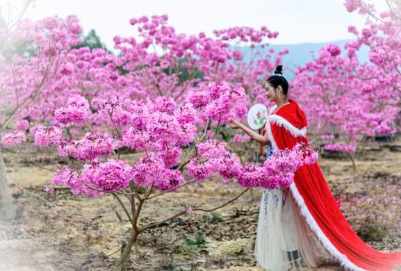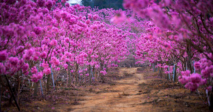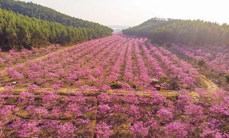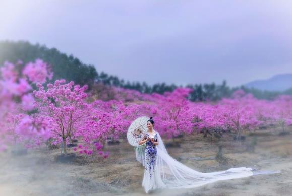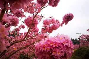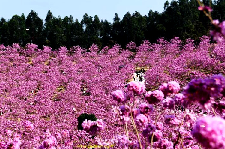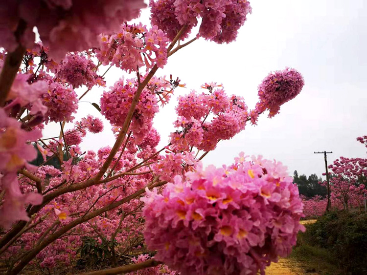 14:50 到达【绿美生态园】,占地千余亩的紫花风铃木林场,每逢冬季,这里的风铃花争相怒放,浪漫花海开满山头,形成一片姹紫嫣红的海洋