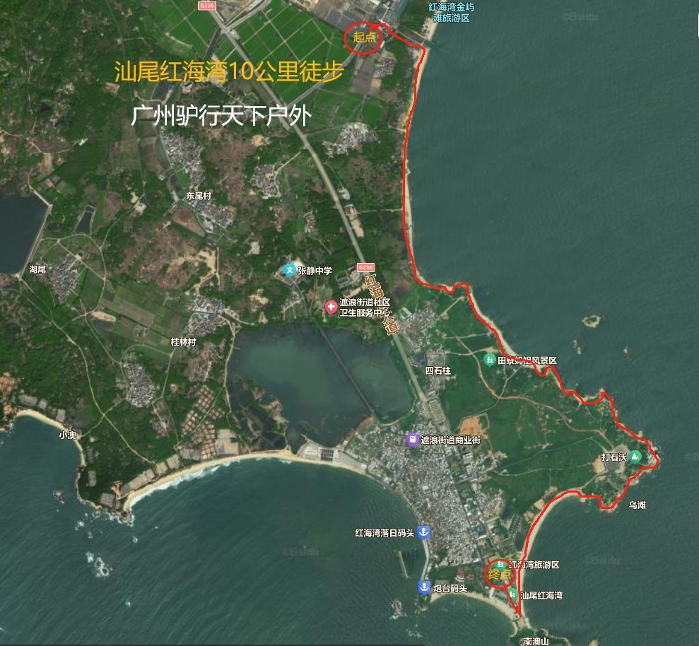 【途径的路径】路线依次途经径尾村、金屿滩、长沟村、渔村码头、田寮村后澳沙滩、妈祖湾风景区、后海沙滩(最美路段)、网红碉堡、财神庙、南海寺、观音像、郑成功像、红海湾旅游区、海滨浴场、遮浪奇观风景区,可瞭望青岛屿(灯塔岛),路线依山傍水,休闲轻松,是一条独具特色的粤东红海湾海岸穿越线。但实际徒步过程中可能会有调整,请紧跟队伍。