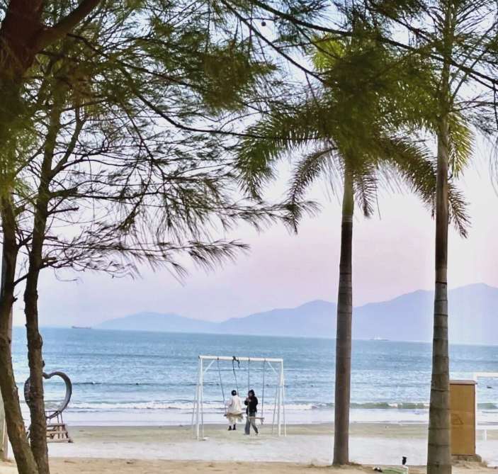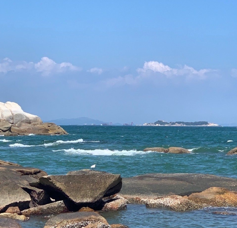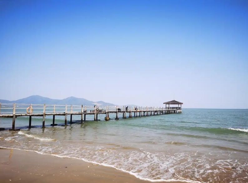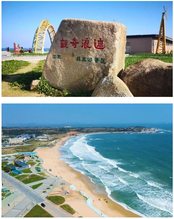 东西两侧形似月牙的海湾,长年一边波涛汹涌,一边风平浪静,此起彼伏,蔚为奇观,可谓“中国观浪第一湾”。其沙滩金黄细腻,海水蔚蓝透明,礁岩千姿百态,阳光、蓝天、白云相得益彰,帆影、翔鸥、彩霞交相辉映,极富魅力。