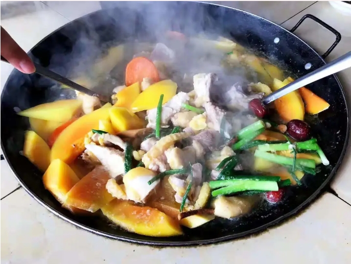 粤味秘寻第①站美食推荐:高明茶山木瓜柴火鸡。