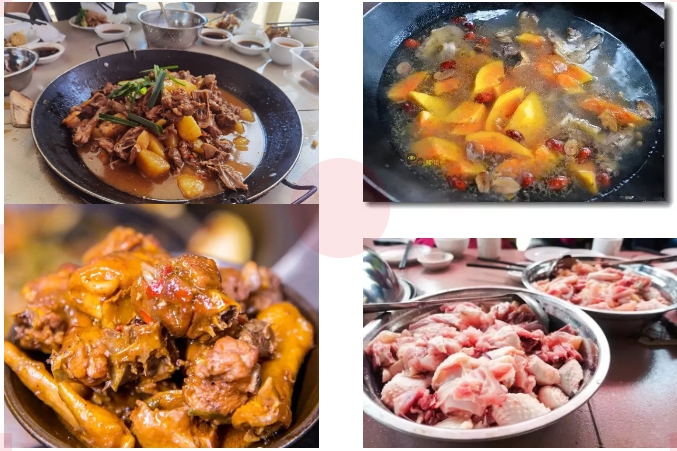 2、途径古村落AA柴火茶山鸡围餐,人均约45元(10人一围、一般是一鸡一鹅两个大锅,需要提前跟客服预定)