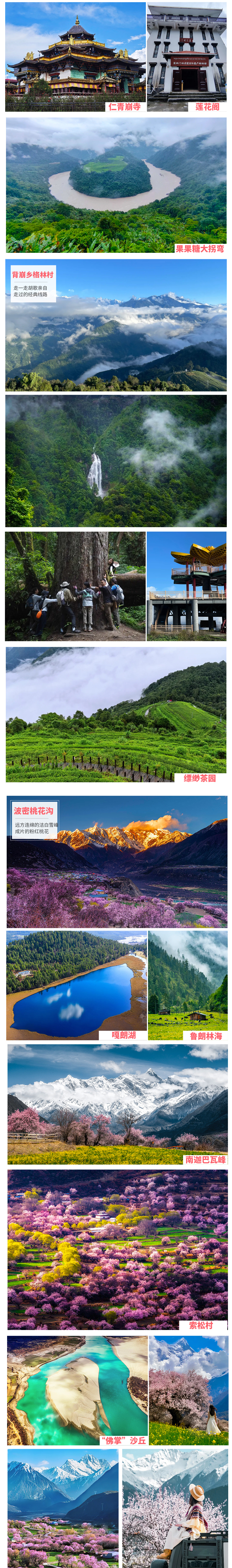 7.【丰富多彩】醉美林芝桃花季与三江变流世界自然遗产的雪山、草甸、原始森林、高山峡谷、高原湖泊、藏传佛教寺院等众多自然景观与藏区人文与民族风情的完美融合。