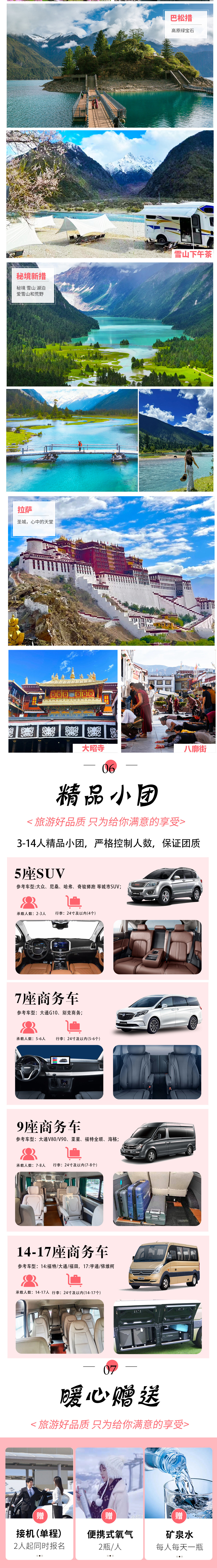 2.景点及门票:梅里雪山观景台、盐井古盐田,来古冰川门票+电瓶车,鲁朗林海门票,嘎朗湖,桃花沟,雅鲁藏布大峡谷门票,巴松措门票,新措门票,果果糖大拐弯门票+摆渡车,格林村向导费。